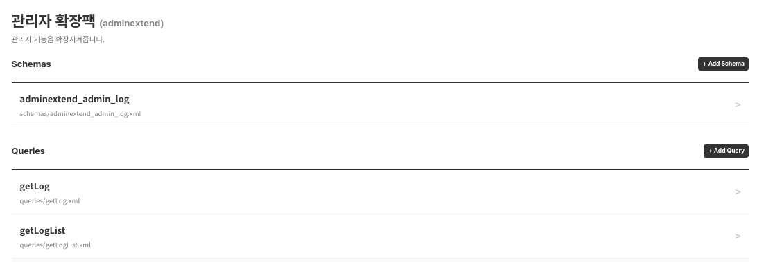 예시로 관리자 확장팩 모듈을 불러왔습니다.