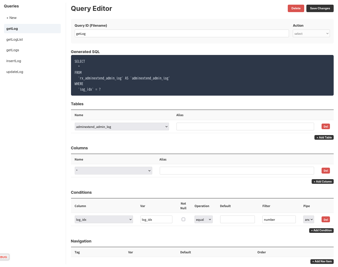 현재는 간단한 CRUD 쿼리를 작성/수정할 수 있도록 개발해두었습니다.