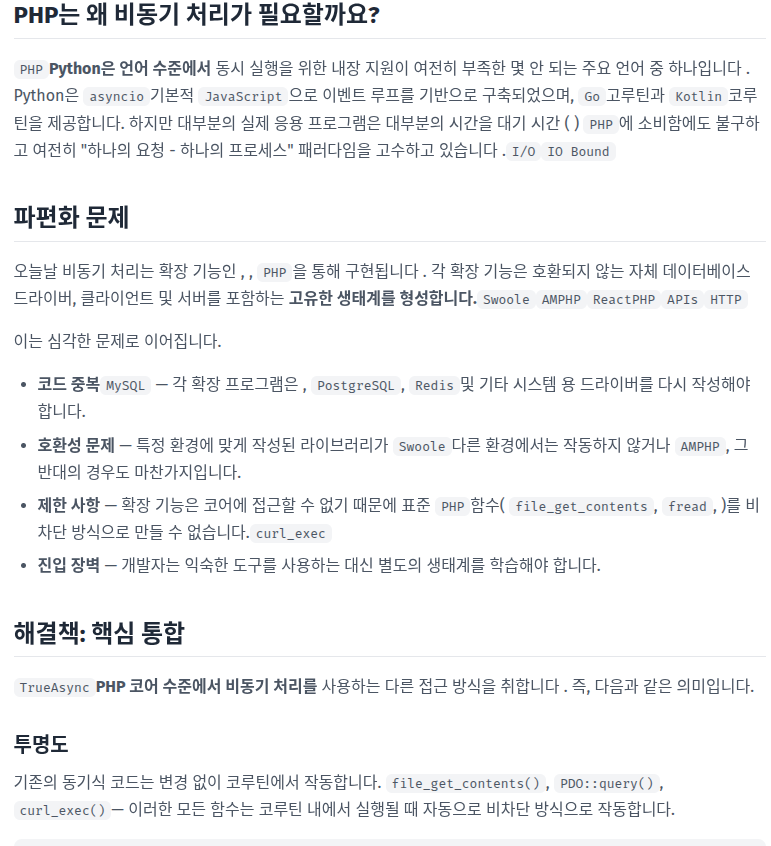 1년전부터 PHP RFC 로 추진하던 프로젝트명 TrueAsync.