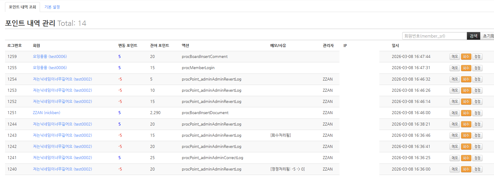 공개(무료) 배포할 포인트 확장관리 모듈을 개발하고 테스트 중입니다.