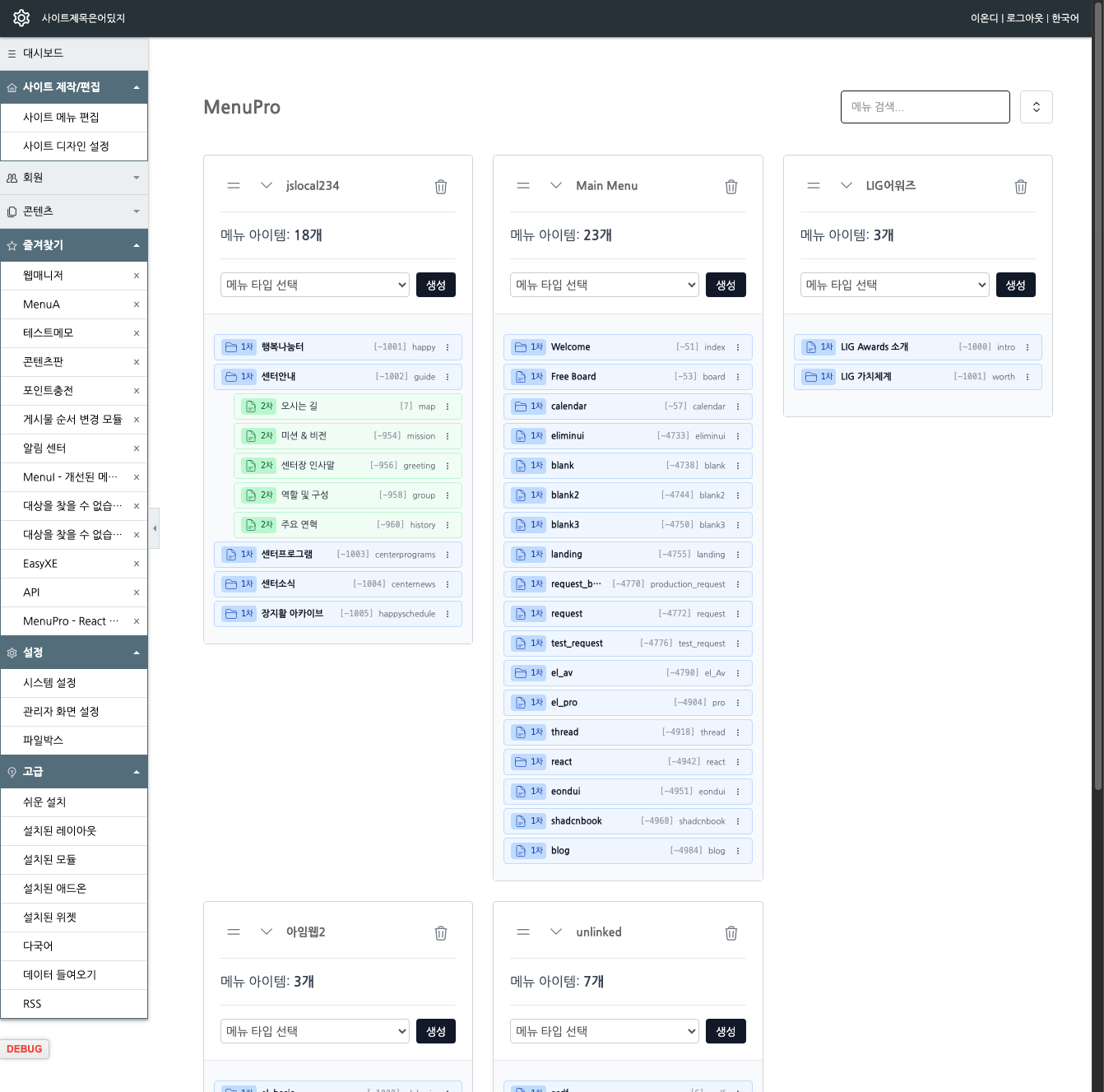 제가 20년간 XE를 활용해서 사이트를 만들었는데 메뉴 갯수가 몇개였을까요