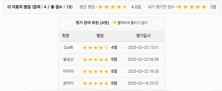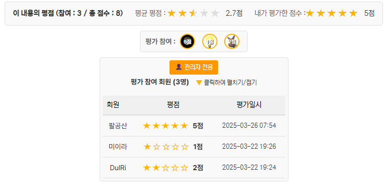 평점모듈 이지만 게시판 스킨에서 설정과 수정이 많습니다.