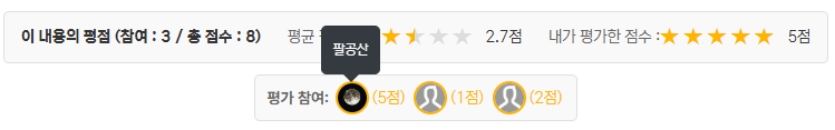 | 간단한 소개 | 게시글에 별모양 평점을 부여하는 모듈입니다. |