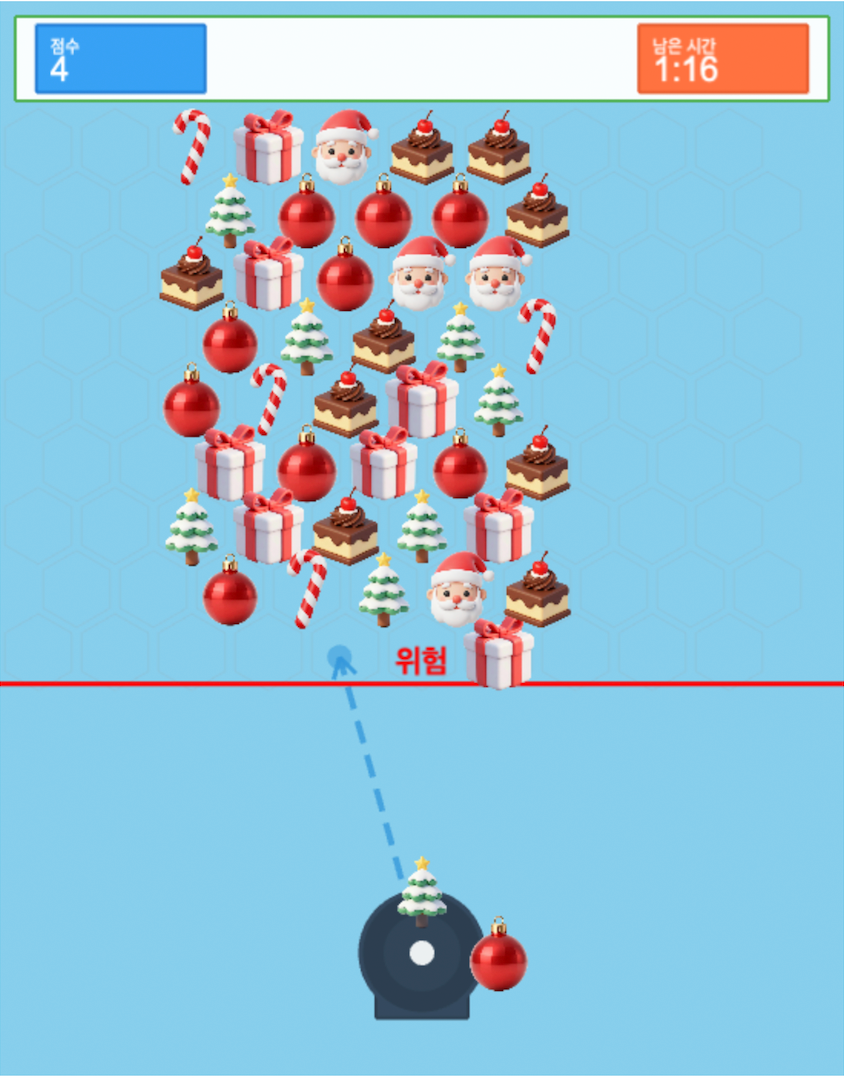 - 버블 발사 시스템: 마우스나 터치로 조준하여 버블을 발사