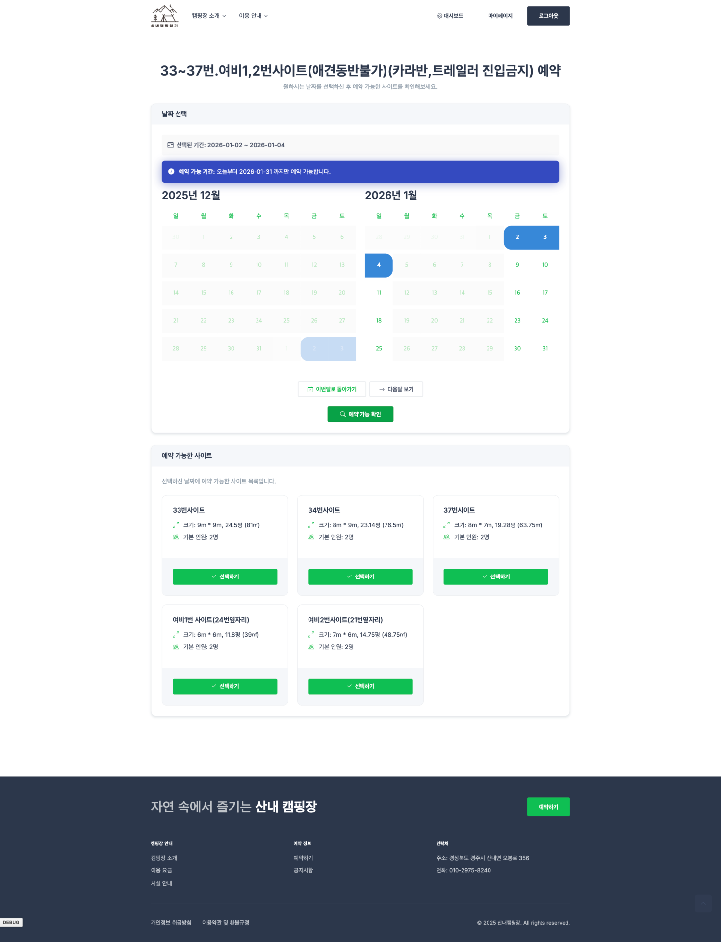2. 날짜 및 사이트 선택 (예약 가능 여부 확인)