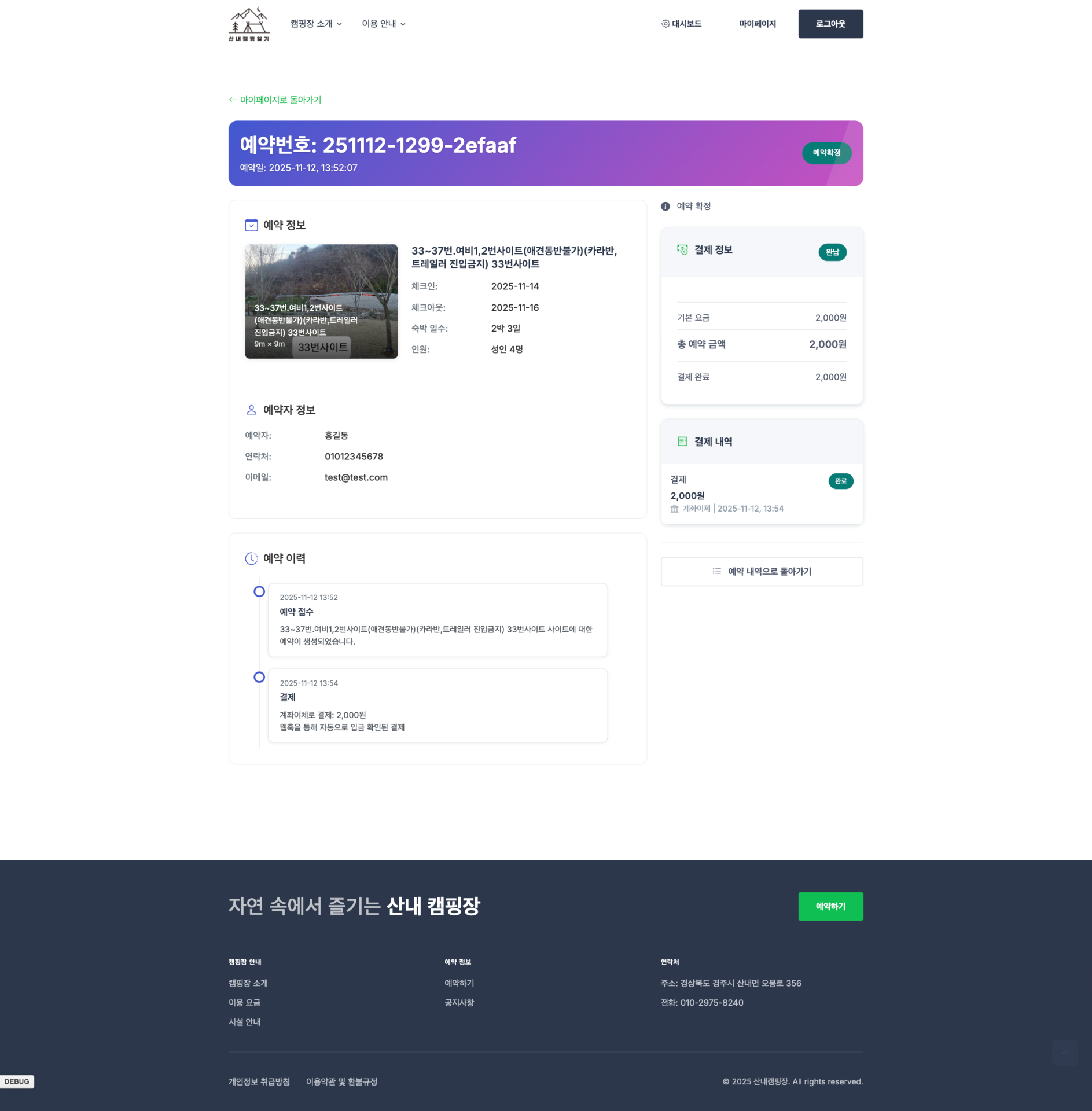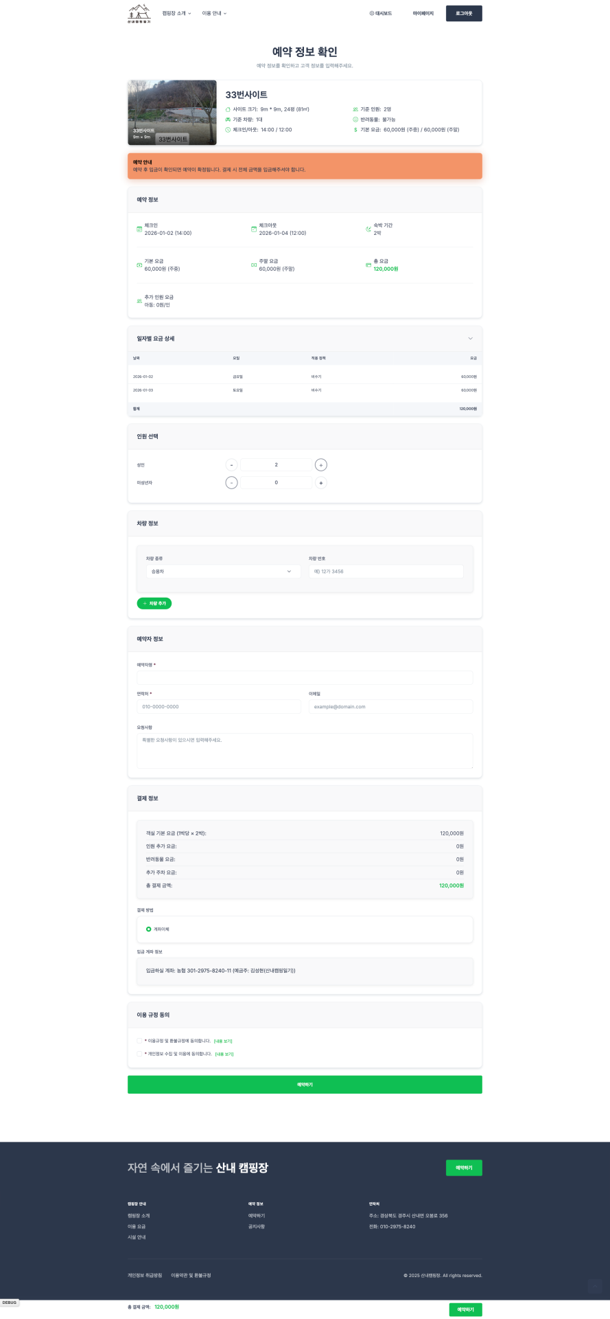 캠핑장 예약의 전 과정을 관리하는 핵심 기능입니다.