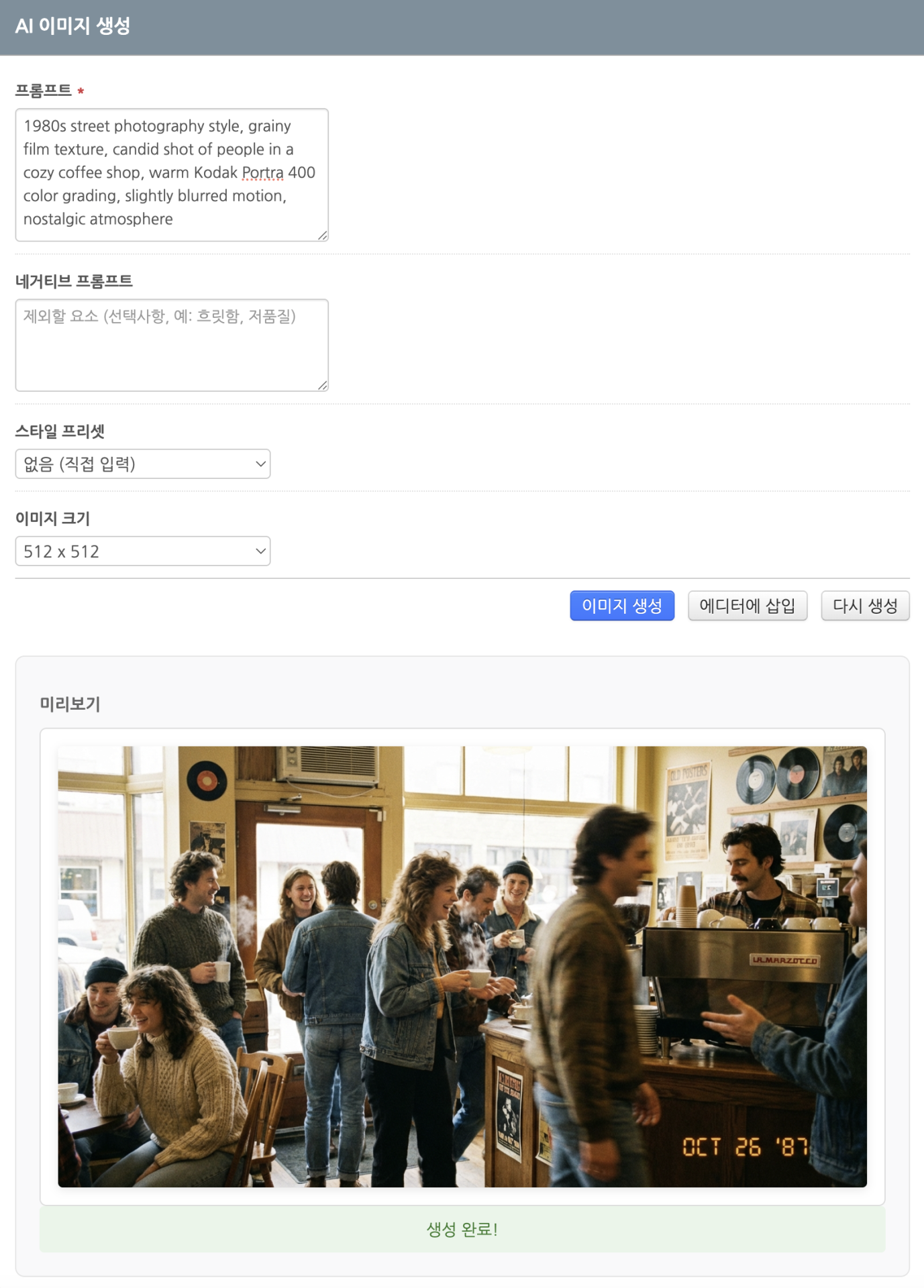 - 이미지 크기 선택 (512x512 ~ 1024x1024)