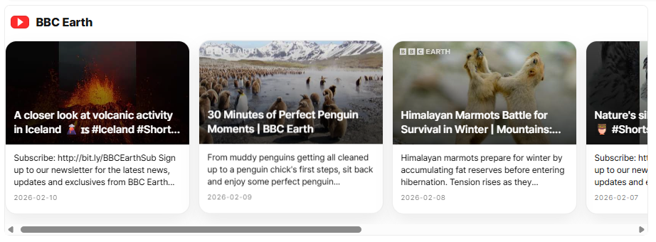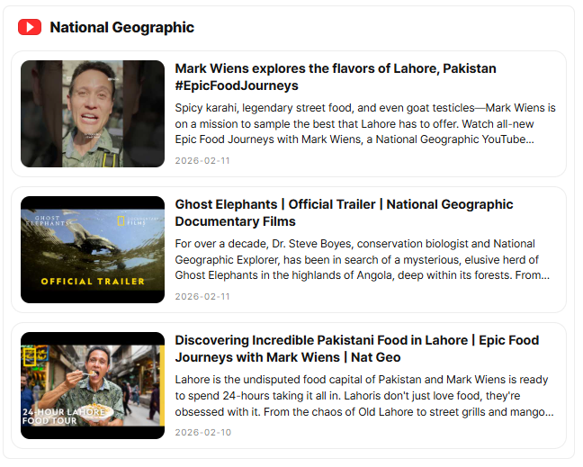 설정한 유튜브 채널 RSS 피드에서 최근 영상 정보를 가져와 라이믹스에서 보여주는 위젯입니다.