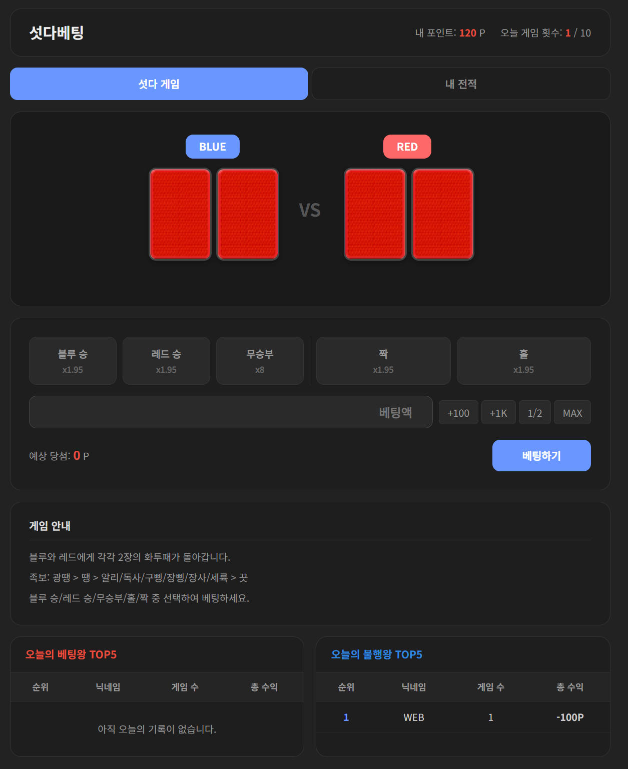 최소 베팅액: 100P