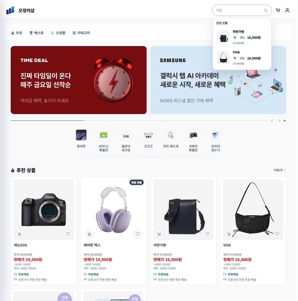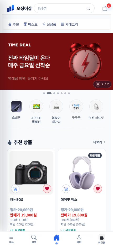 - 상단 배너 및 이벤트 카테고리 설정