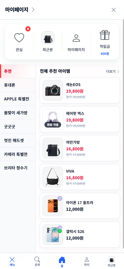 - 사용자 화면 (모바일)