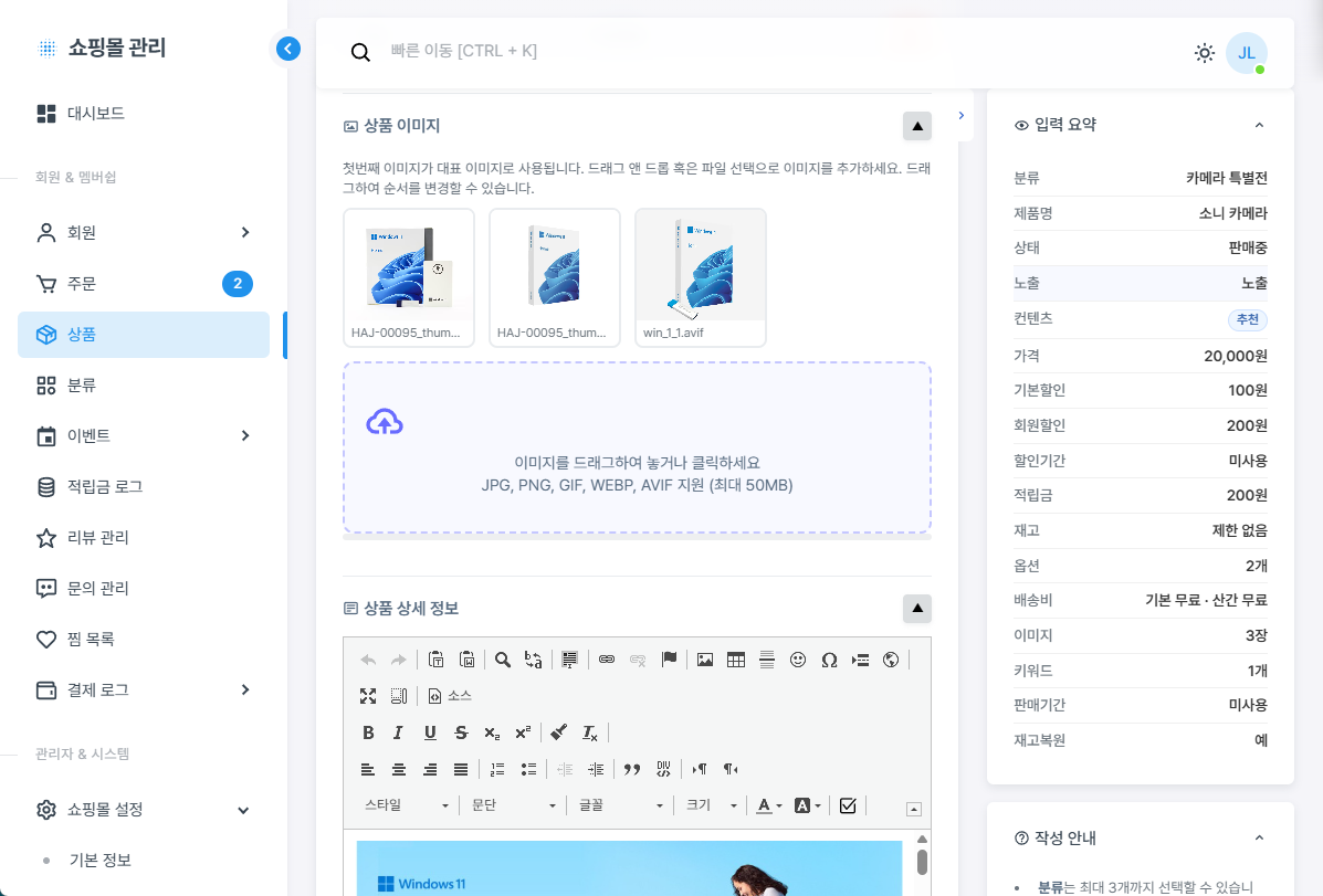 라이믹스에서 운영 가능한 쇼핑몰 모듈입니다.