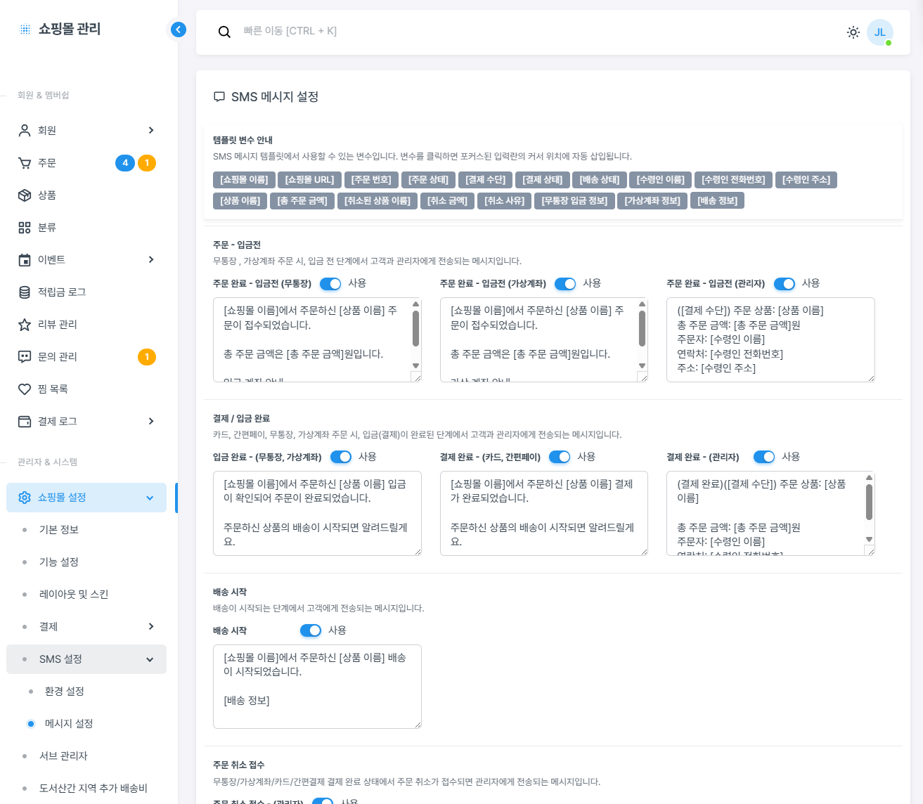 - 도서 산간 지역 추가 배송비 적용 및 관리