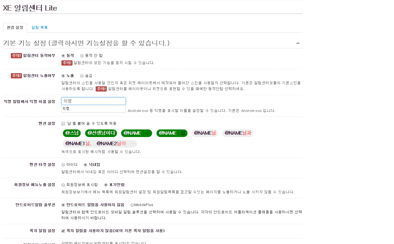 XE 알림센터 Lite 니가뭘알아 2015.12.06 04:24 404 0 1 XE 알림센터 Lite 기능을 사용하고 있습니다. 저희 홈은 익명제입니다. 알람이 오면 회원들 닉네임으로 알람이 뜸니다 설정을 해도 설정해둔 이름으로 안뜨는데 뭐가 잘못된건가요 ㅠㅠ