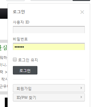 메뉴 상단의 로그인 버튼을 눌렀을때..