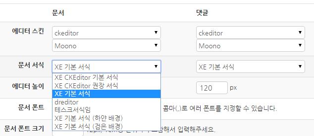 에디터 스킨을 ckeditor로 지정 / 문서서식을 xe기본서식으로 지정해서 사용해도 문제가 없는건지 궁금합니다.