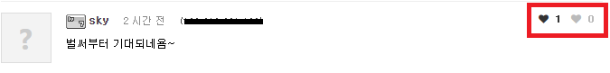 스케치북 게시판 댓글 추천/비추천 이미지 변경건 우리종도 2016.01.23 09:22 258 0 4 안녕하세요. 스케치북 게시판을 사용중인데요. 댓글에서 추천과 비추천 이미지가 기본적으로 하트로 되어있는데요, 하트를 이미지를 변경하고 싶은데요, 어디서 수정을 할 지 아시는 분 있으실까요? 읽어주셔서 감사합니다.