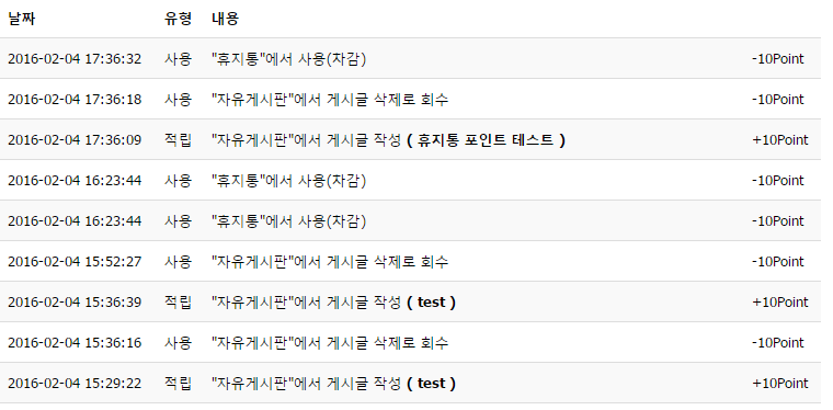정상적이라면 게시판 글을 휴지통으로 옮길 때 포인트가 차감되지않습니다.