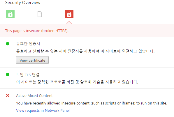 그리고 제가 대충봐서 그런진 모르겠는데 이미지 mixed 경고만 있지 저렇게 자물쇠가 깨지진 않네요.