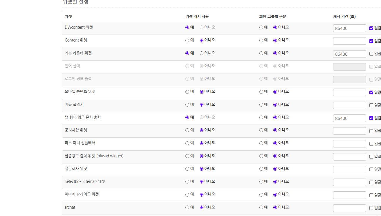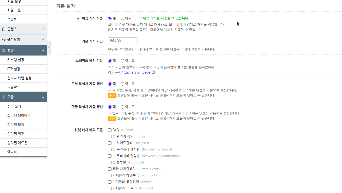 위젯 캐시도 가능하면 슈퍼캐시의 위젯 캐시 강제 적용 기능을 쓰는 것보다