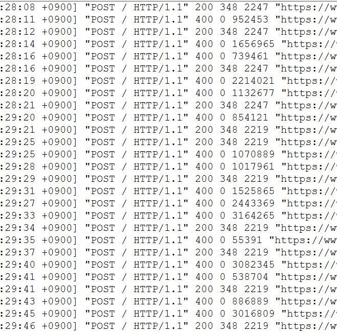 로그를 확인해보니 짤 처럼 나오고 있습니다.