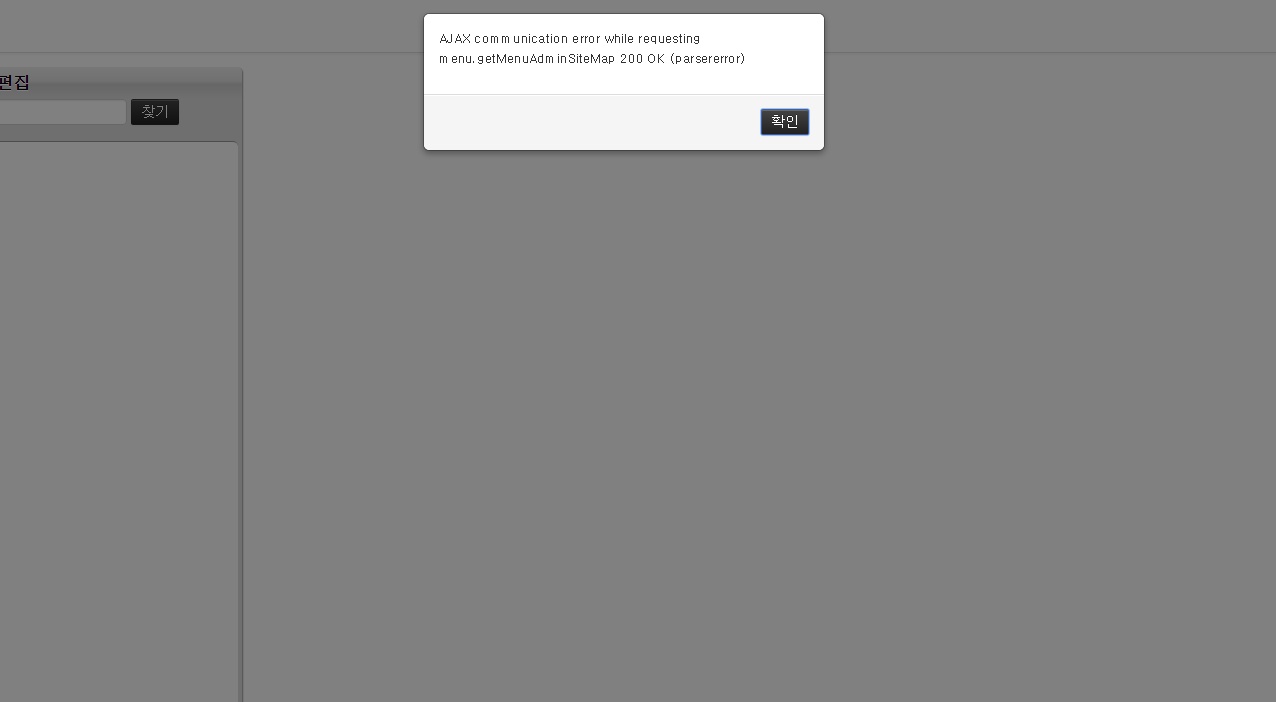 관리자페이지 - 메뉴부분을 클릭하면 위와같은 오류가 나타납니다