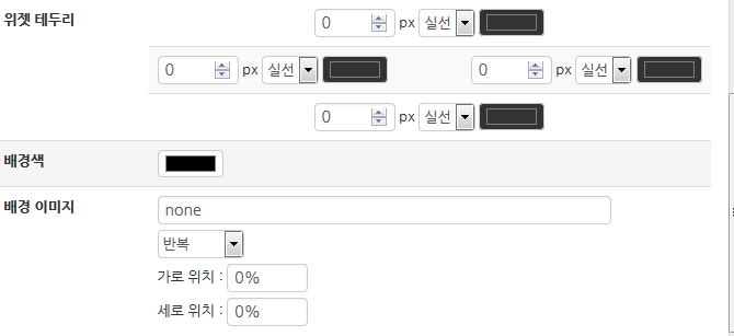 위젯페이지에서 위젯크기 설정시 위젯 태두리와 배경색이 검은색으로 기본 설정이 돼있습니다.