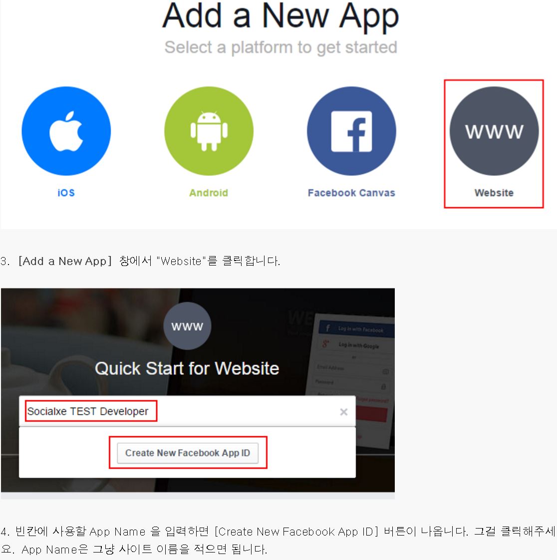 Conory님이 써주신 facebook 설명글에서 이 facebook API를 설정하기 위해 facebook developer 사이트(https://developers.facebook.com) 에서 설정하는게 있는데, 글쓰신 시점에서 1년이 지나서 그런지 facebook developer 웹페이지가 가이드에서 쓰신거랑 달라졌더라구요.