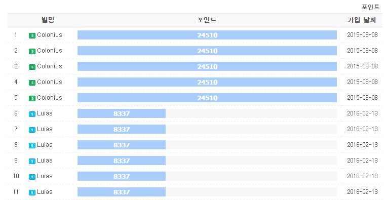 xe 공홈에 포인트랭킹 위젯이라고 있는걸로 알고있습니다.