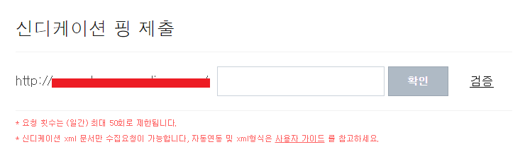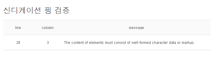 2) 신디케이션 핑 제출에서 검증 버튼을 누르면 아래 이미지와 같은 메시지가 출력이 되는데,