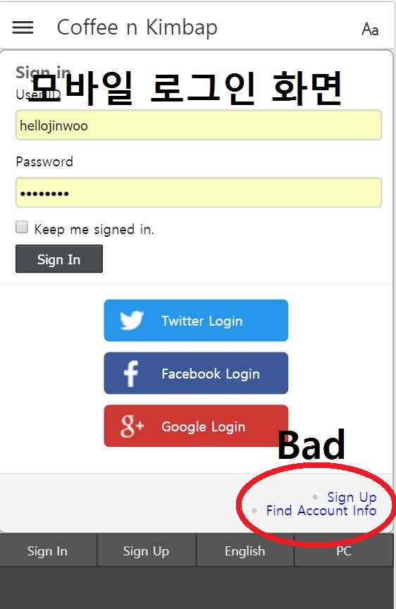왼쪽이 모바일 버젼// 오른쪽이 PC 버젼입니다. 왼쪽 모바일 버젼의 Sign up, Find account info 를 오른쪽처럼 바꾸고 싶습니다.