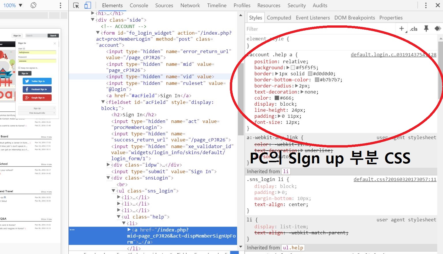 개발자 도구에서 로그인 관련 CSS 소스 뜨는 주소로 봤을 땐