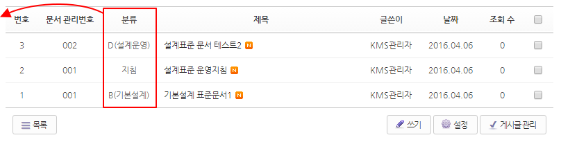 리스트에서 헤더 순서는 게시판 정보 에서 바꾸시면 될거 같습니다.