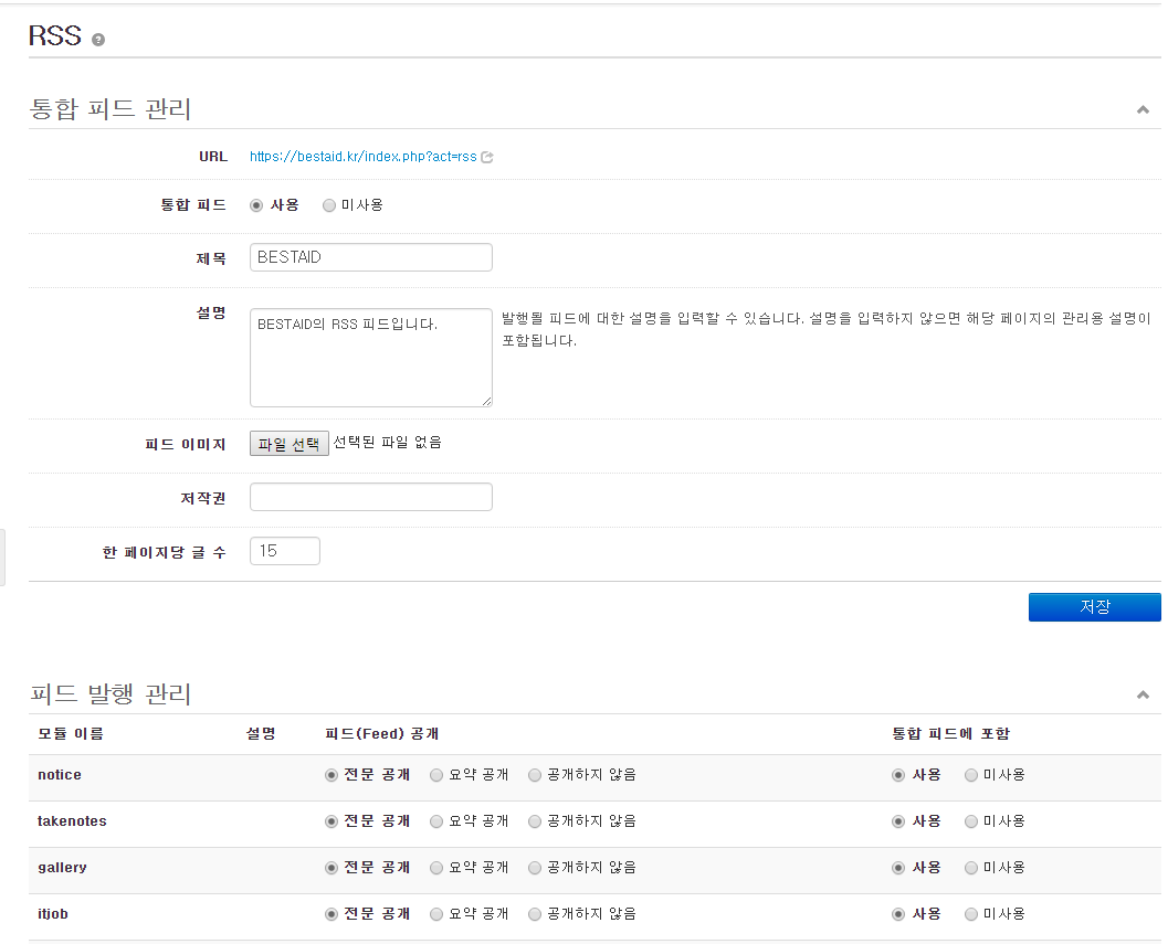 저는 왜 rss가 안될까요? 캡틴 2016.04.07 05:43 336 0 5 https://bestaid.kr/index.php?act=rss 이렇게 rss모듈에서 설정하고, 게시판마다도 다 허용인데도 아무것도 뜨지않네요; 왜그런지 모르겠어요.