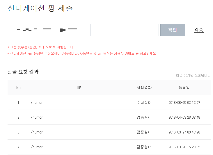 거기서 등록을 해도 아래와 같이 수집실패 혹은 검증실패로 뜨더라구요.