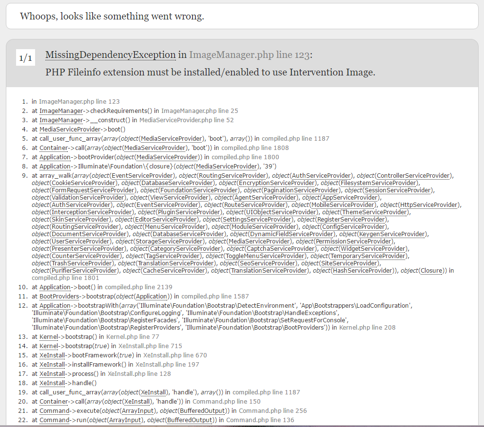 XE3 설치 PHP 확장 관련 에러 네비 2016.07.08 18:03 322 0 2 PHP FILEINFO 확장이 개입 이미지를 사용하도록 설정 / 설치해야합니다. 라는데 어떠한 확장모듈을 뜻하는건지 잘모르겠네요..ㅎ 네비 Lv. 3