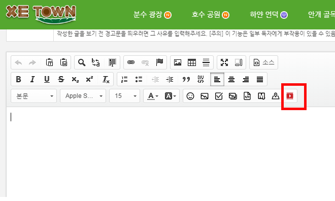 xetown에 글쓰기 할때 빨간색으로 동영상 넣을수 있는 버튼 있는데