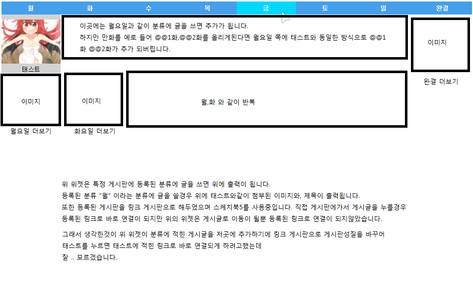 그래서 게시판을 링크 게시판으로 만들고 위 요일에 나온 태스트를 누른다 치면 태스트 게시글(링크게시판입니다)에