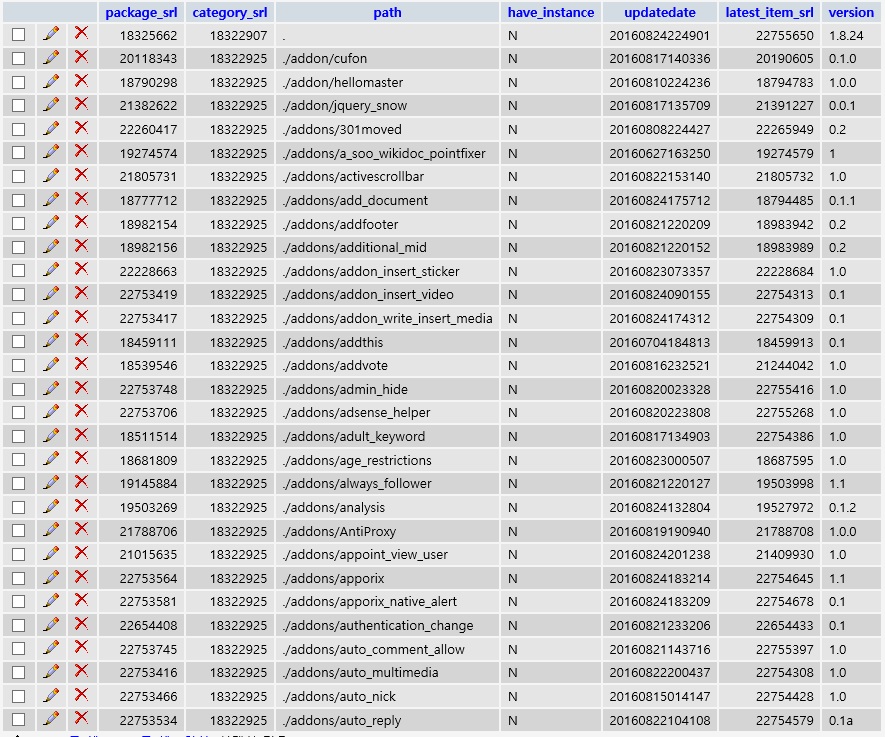 쉬운설치 테이블의 레코드수는 1262개 그대로네요.