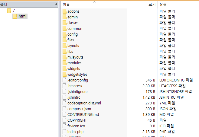 일반적으로 xe폴더가 있으면 index.html의 내용에