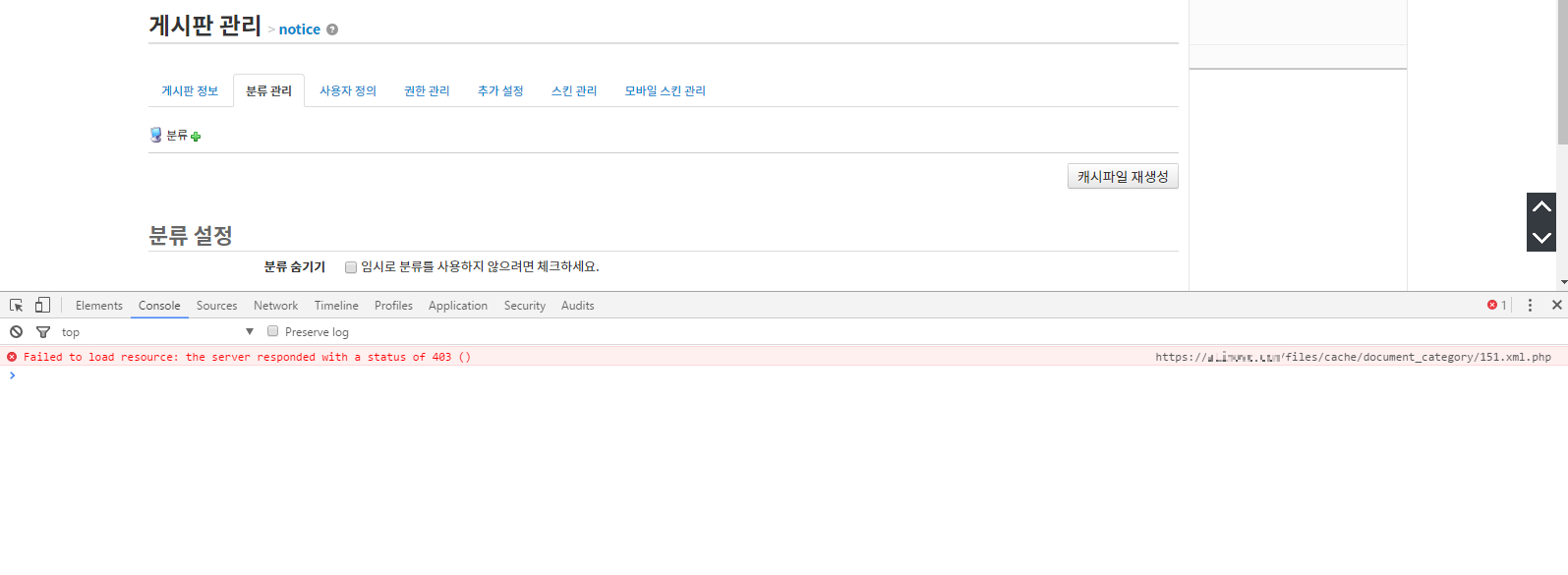 혹시몰라 /files/ 및 하위 폴더의 권한을 707로 조정했지만, 분류가 표시되지 않네요.