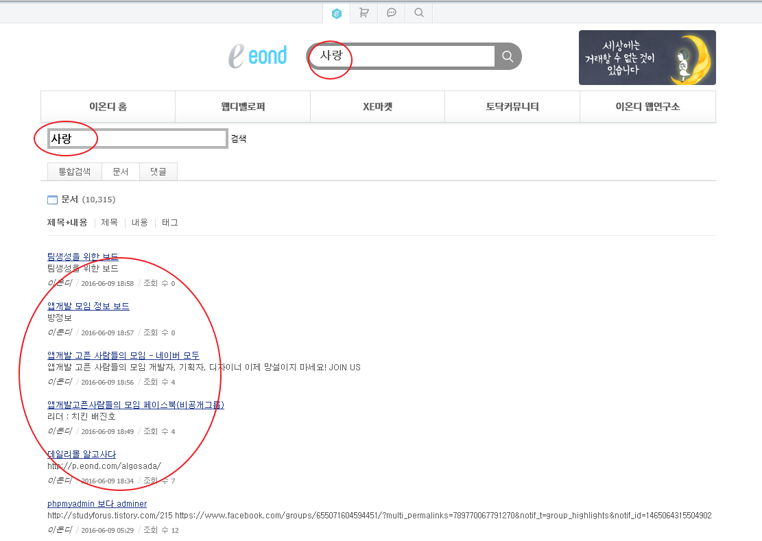 레이아웃 상의 문제일까요, 아니면 검색관련모듈들 간의 충돌일지 ㅠㅠ