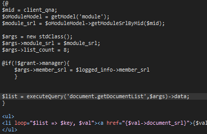 이렇게 하는 건 잘못된 건가요?;; 단순 php에서는 저렇게 if문을 사용하는데;ㅁ; xe에서는 저렇게 사용하니 구문 오류라고 뜨네요.