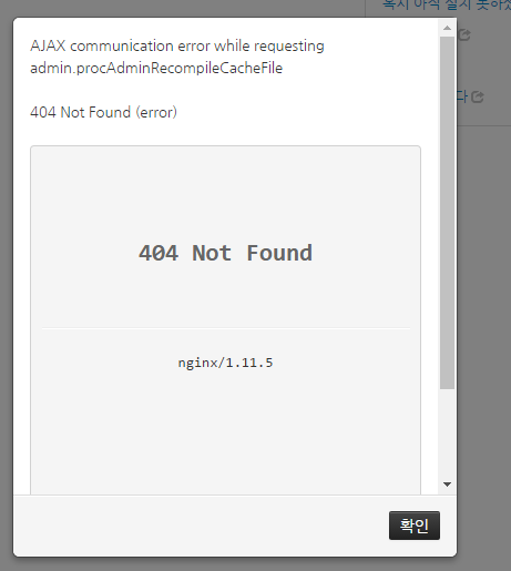 AJAX communication error while requesting admin.procAdminRecompileCacheFile