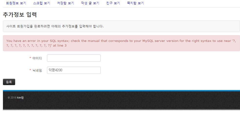 소셜로그인 질문합니다 2 낙타 2016.12.23 20:43 225 0 1 이런 에러는 처음봅니다 무슨에러인가요?ㅠㅠ 어디가잘못됬을까요? 가입을 하면 가입이 되긴하는데 저런 에러가 뜹니다.