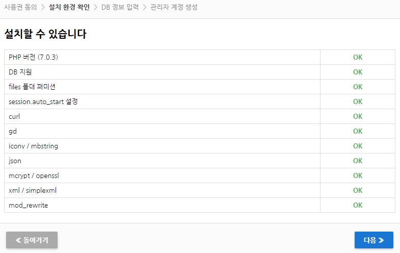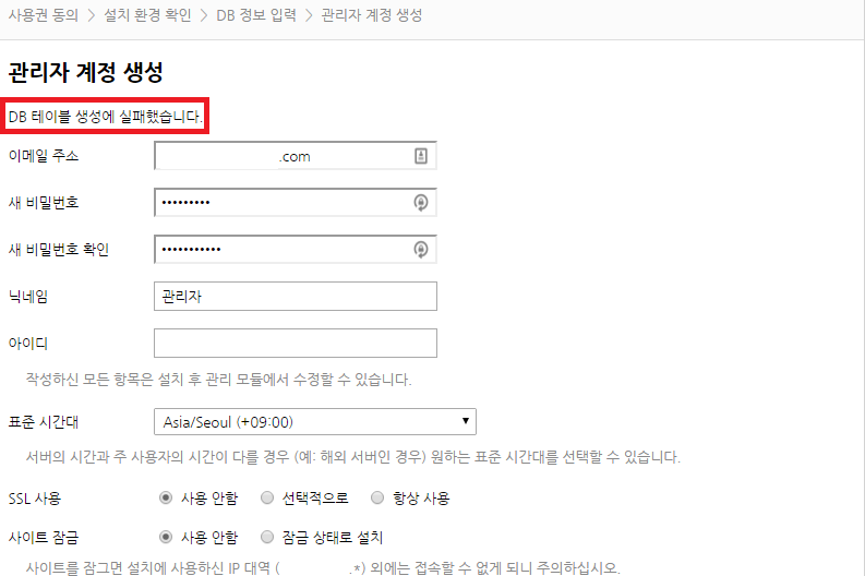 계속해서 저 메세지가 뜨네요... XE는 동일한 과정으로 설치하면 DB테이블이 잘 생성됩니다...