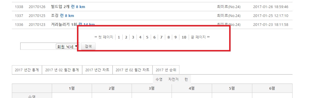 그런데 PC버전에서는 목록 아래 페이지 넘버(누르면 페이지 이동되는) 가 뜨는데