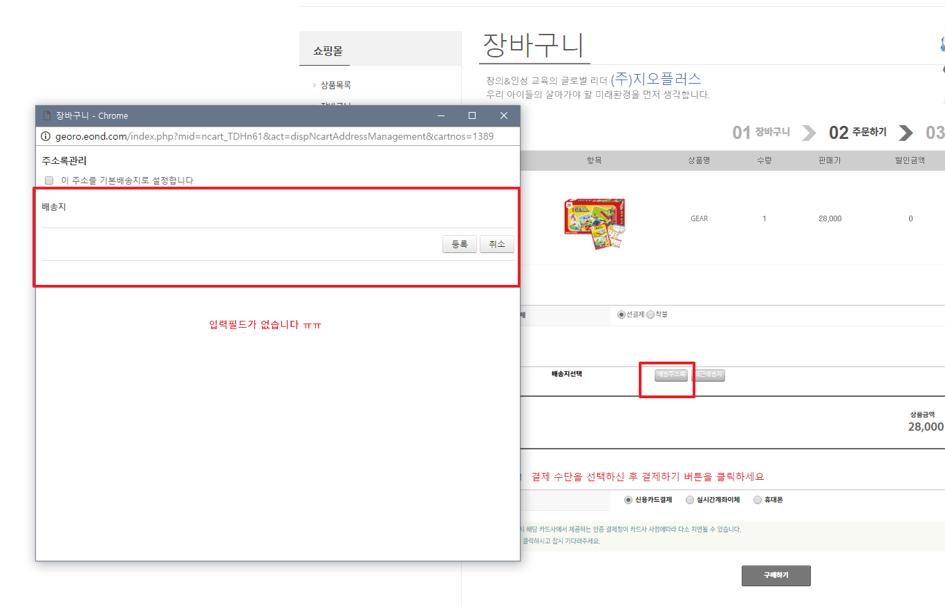 배송지 선택 없이 주문을 해버려서요 ㅠ