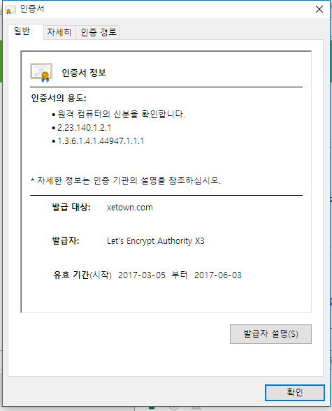 크롬이나 IE11 이나 인증서 보기에서 보여지는 것은 동일하더라구요.