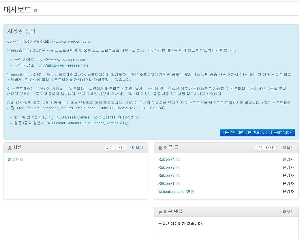 이게 나옵니다. 전에도 그래서 멀 잘못했나 싶어서 다시 설치했거든요 xe.1.8.34 최신버전입니다. 지금까지 xe세팅하면서 이런적이 없었는데 난감하네요